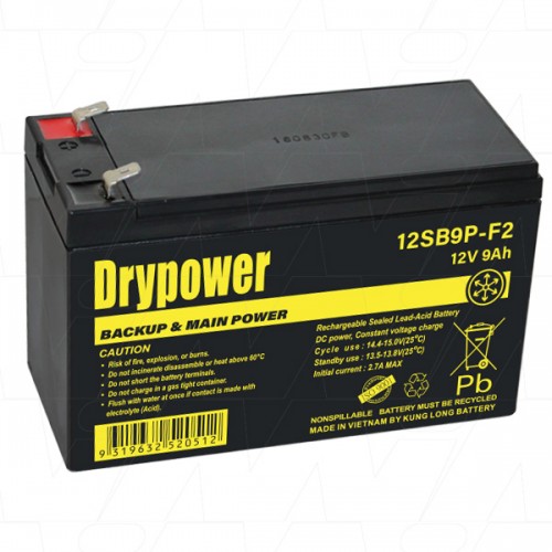 - Product Code: 12SB9P-F2 Drypower 12V 9Ah SLA Medical & Multi Use Battery