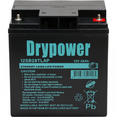 - Product Code: 12SB28TLAP Drypower 12V 28Ah Long Life Standby SLA AGM Battery
